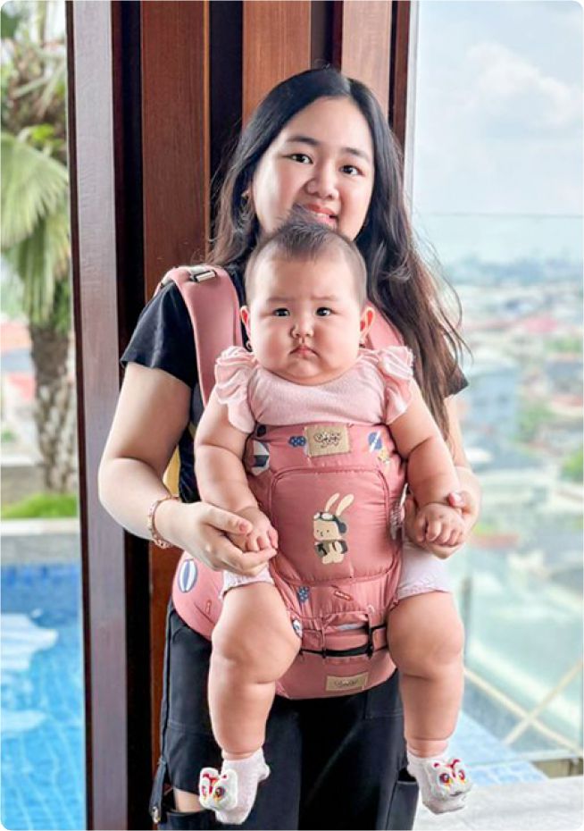 Moms @naurakhr pakai Gendongan Samping Baby Moo Series. Gendongan yang aman dipakai dari bayi newborn sampai 3 tahun. Tali di bahu dibuat lebar dan tebal