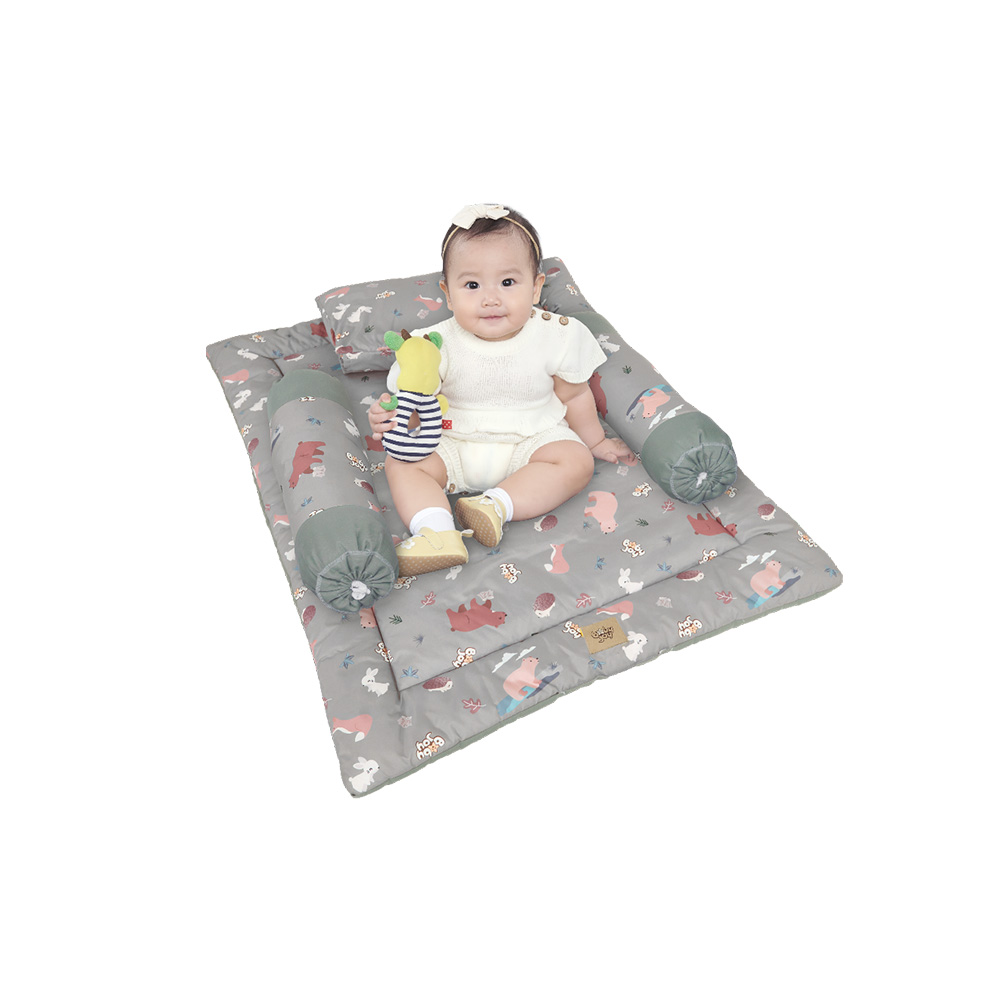 Terdiri dari 1 matras, 1 bantal, dan 2 guling yang siap menemani waktu tidur bayi di rumah maupun saat bepergian.
