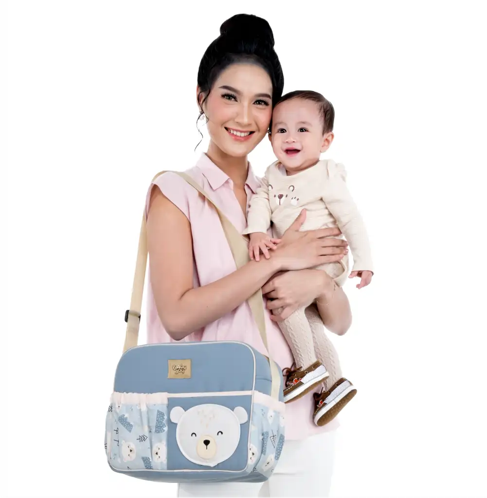 Kantong utama luas: Bisa menyimpan baju bayi, popok, waslap, bedak, dan kebutuhan lainnya