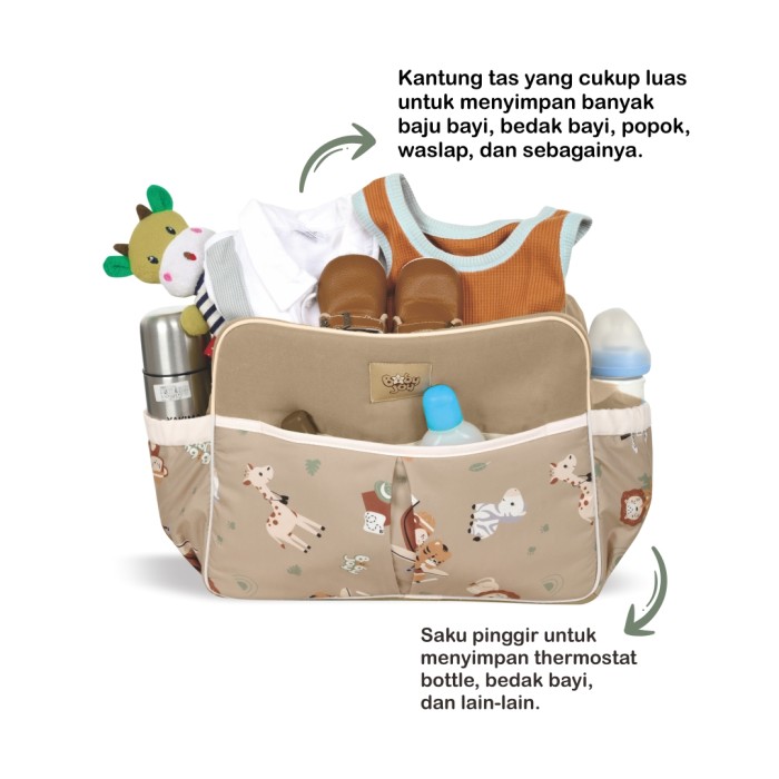 Tas bayi medium dari Jungle Joy Series dirancang dengan kapasitas luas namun tetap ringkas, sehingga moms bisa membawa perlengkapan si kecil dengan rapi dan praktis. Cocok untuk bepergian harian maupun perjalanan sedikit lebih lama.